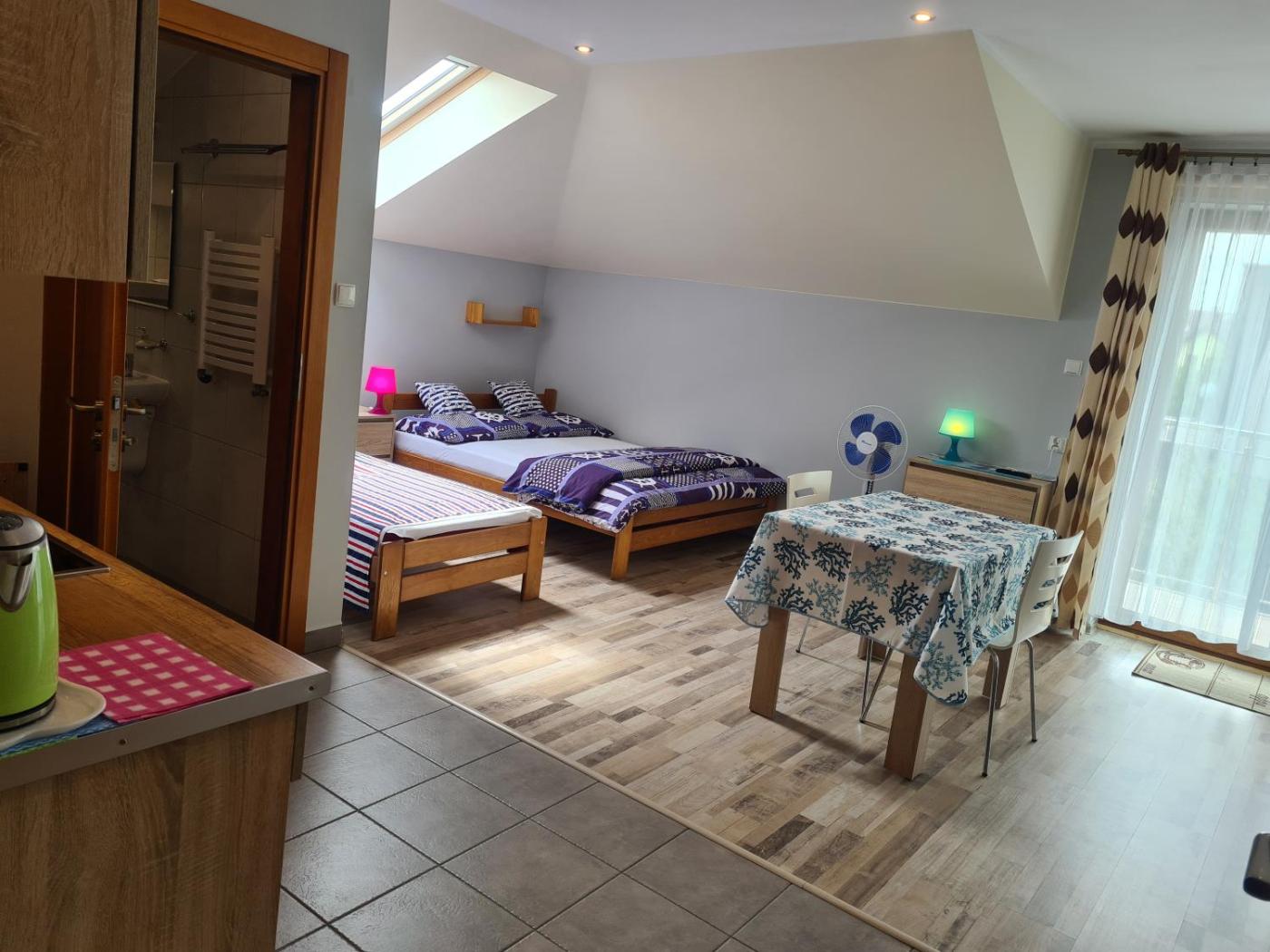 Rodzinny apartament typu Studio. Guests will find a stovetop, a refrigerator, kitchenware and a microwave in the well-fitted kitchen. The studio also comes with a barbecue. This studio is comprised of a flat-screen TV with streaming services, a private bathroom as well as a terrace with garden views. The unit has 3 beds. Studio - 4 osobowy. Powierzchnia pokoju ok.: 34 mkw. ;